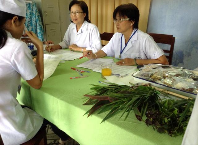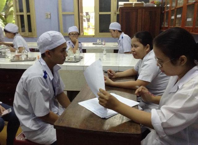 Các học sinh K6, cơ sở liên kết tai Cao đẳng y tế Huế trả lời phần thi thực hành