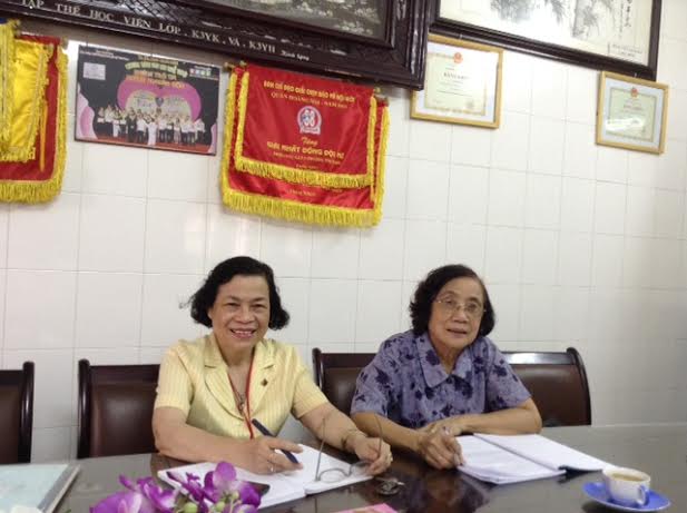 PGS.TS Phan Thị Thu Anh(áo hoa), Hiệu trưởng nhà trường và BSCK2 Lê Thị Hồng Hoa(áo vàng), Chủ tịch HĐQT, phó hiệu trưởng nhà trường